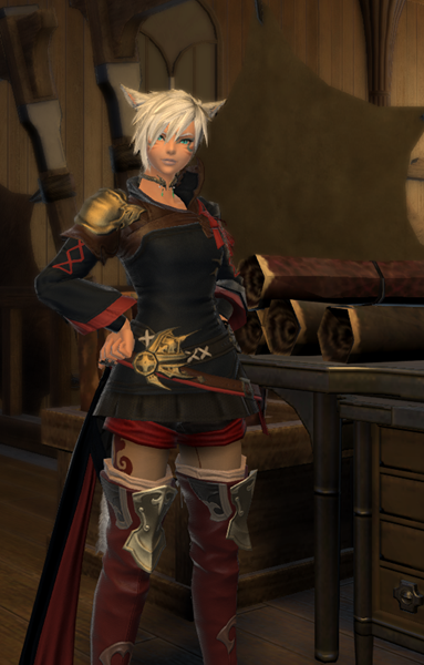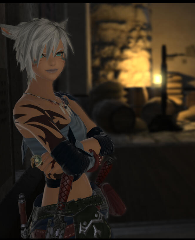 Born in Limsa Lominsa, I'sogari was the second child of a Seeker cook and a Keeper minstrel with wanderlust.While I'sobe mixed their father's startling teal eyes with their mother's sunkissed looks, I'sogari could have been the spitting image of their father if not for slit pupils. A tumultuous childhood of jealously and heartache led I'sogari to spend the days blending in with Limsa's orphans, a regular source of recruits for the Upright Thieves. There was surprise on both sides when I'sogari's eyes met her mother's, her job as a 'cook' at The Dutiful Sisters of the Edelweiss was nothing but a cover for the justice carried out in the shadows of the city.The keen insight of the man who would become I'sogari's master was proved with his first question, 'how would you like to learn to become anyone you want?' I'sogari was a quick study, and the experience of being seen as several different people from head to toe, regardless of gender, brought with it answers and understanding to the root cause of so much unhappiness, 'she' had never had the words to describe that sometimes 'he' felt more right.Now traveling Eorzea and beyond at the behest of the Maelstrom, I'sogari goes wherever they are needed, to infiltrate, punish, kidnap, or kill. Between assignments they often take on a role to help find hidden things others want found, or other lost or rare things that might someday be useful for coin or favors.I'sogari is confident, perhaps a little too forthright, and easily slips into a handful of identities that various groups are familiar with though none know the name I'sogari. The job comes before all, which leaves even the rare romantic partner with a fake persona that eventually vanishes when the relationship becomes too much of a liability.